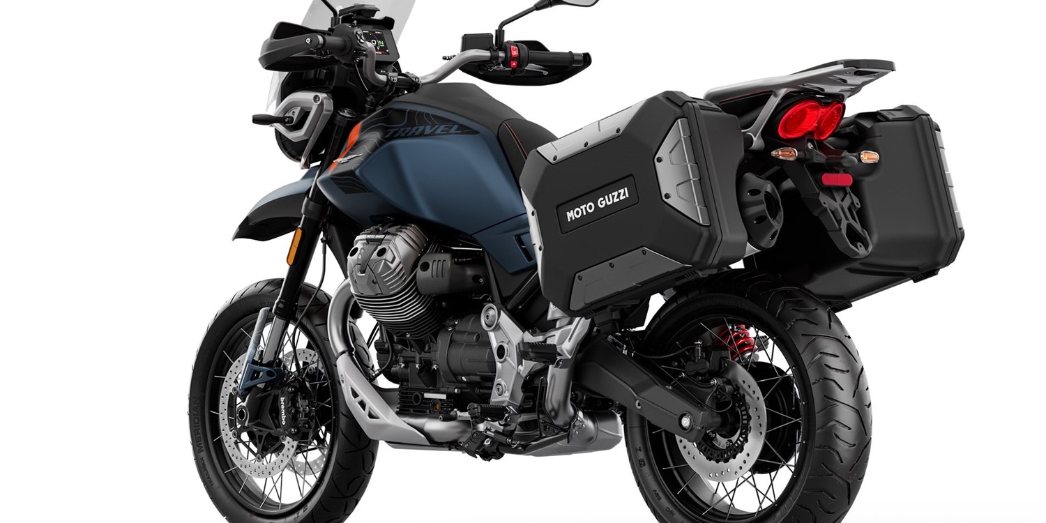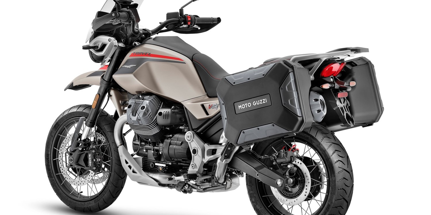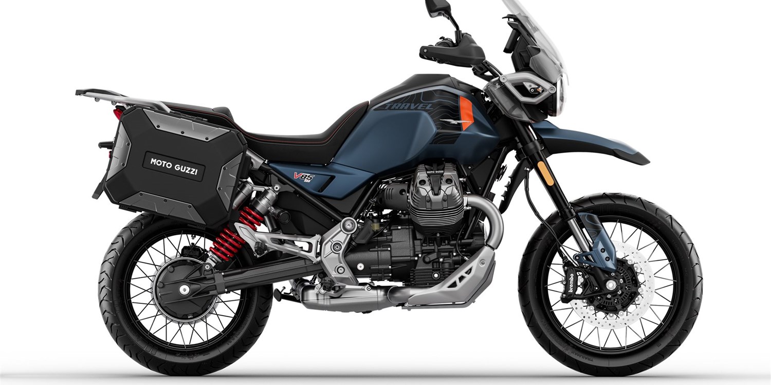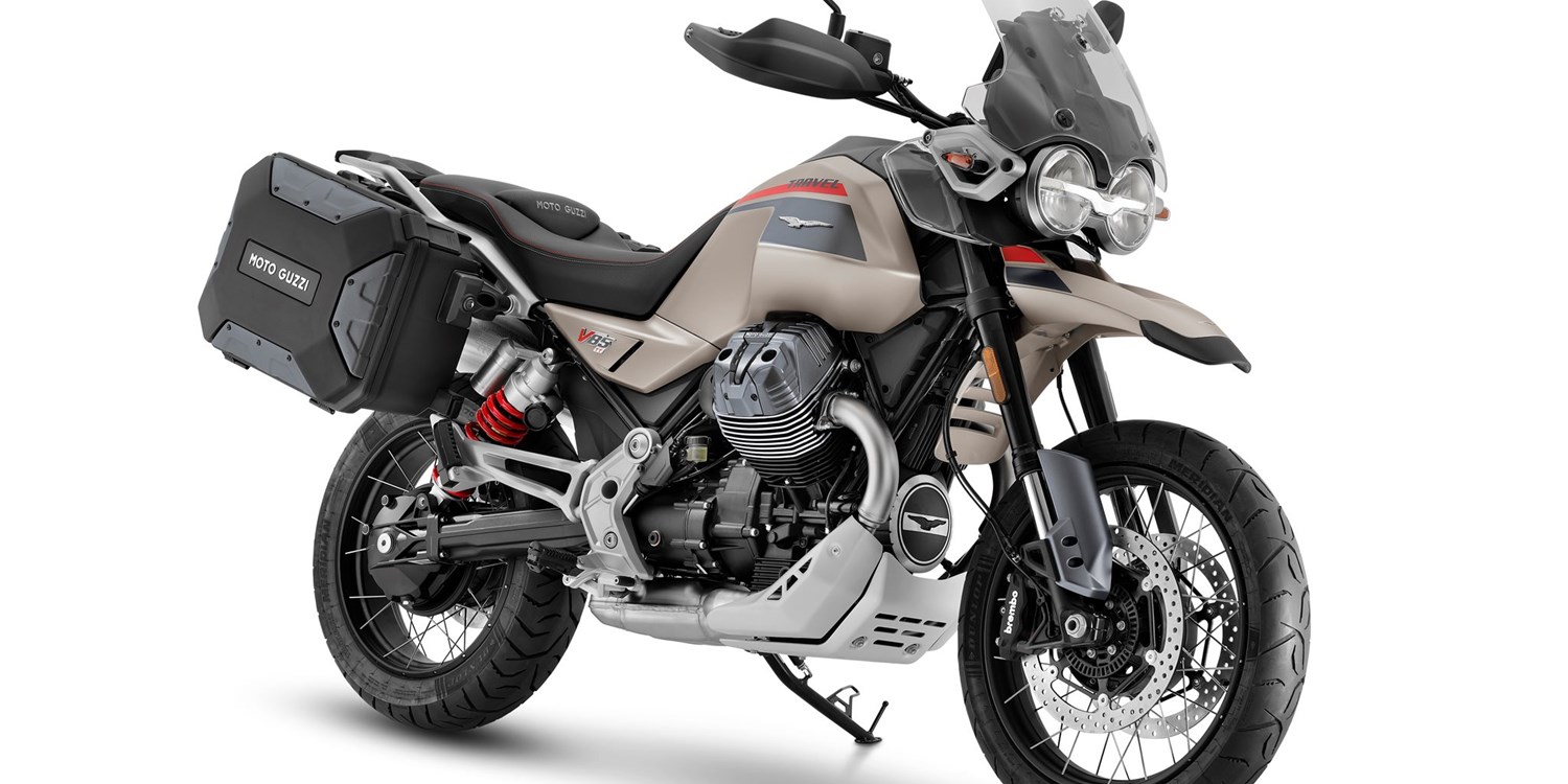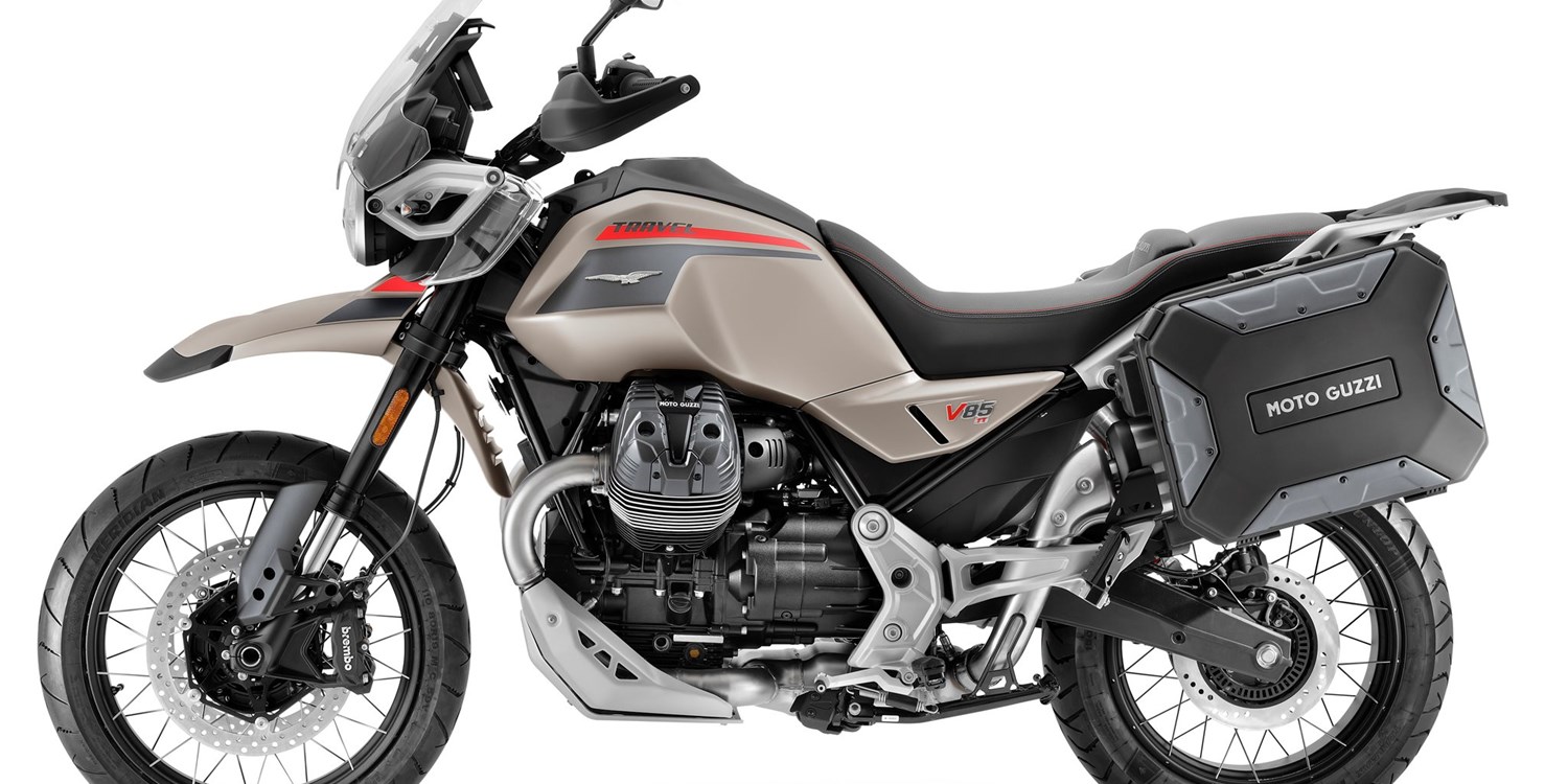 Die Moto Guzzi V85 TT Travel ist mit Gepäck und Sozius immer startklar, egal zu welcher Jahreszeit. Sie verfügt über die umfangreichste Serienausstattung der gesamten V85-Baureihe. Dazu zählen die ferngesteuerte Vorspannungseinstellung des hinteren Stoßdämpfers, Sitz- und Griffheizung, ein Touring-Windschild für mehr Schutz sowie Urban-Seitentaschen (rechts mit einem Fassungsvermögen von 37 Litern für einen Integralhelm, links mit 27,5 Litern).